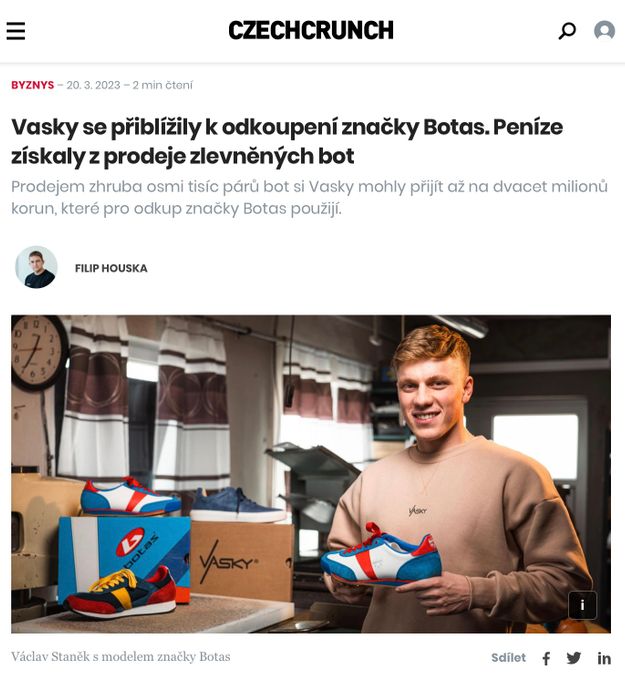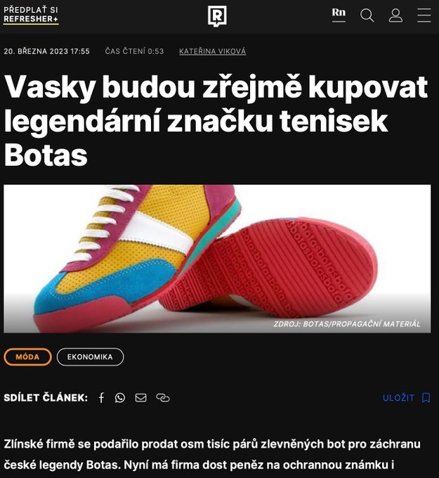 „Aktuálně jsme ve fázi, kdy jsme přijali cenovou nabídku majitelů Botas a připravujeme smlouvu. Do měsíce bychom ji měli podepsat. Současně pracujeme na potenciální první kolekci značky Botas, kterou bychom po podepsání smlouvy rádi představili,“