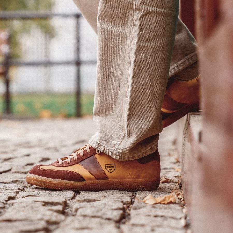 Pod taktovkou nového ředitele Botas Víta Staňka ožívá ikonický střih botasek z 90. let. Ponechal mu základ vhodný na sport, který je jeho vášní, v návrhu designu se mu podařilo zkombinovat minimalismus s retro nádechem – kombo, které je teď v módě. Propojení historie s novou érou je znát i v ponechání klínu typického pro Botas a nového loga na jazyku. Triky na skejtu i s míčem, sprinty během pracovních dnů, večírky. V Botas Iconic zazáříte všude. Materiály: - pryžová podešev odolná proti oděru - svršek z hladké kůže v kombinaci se semišem