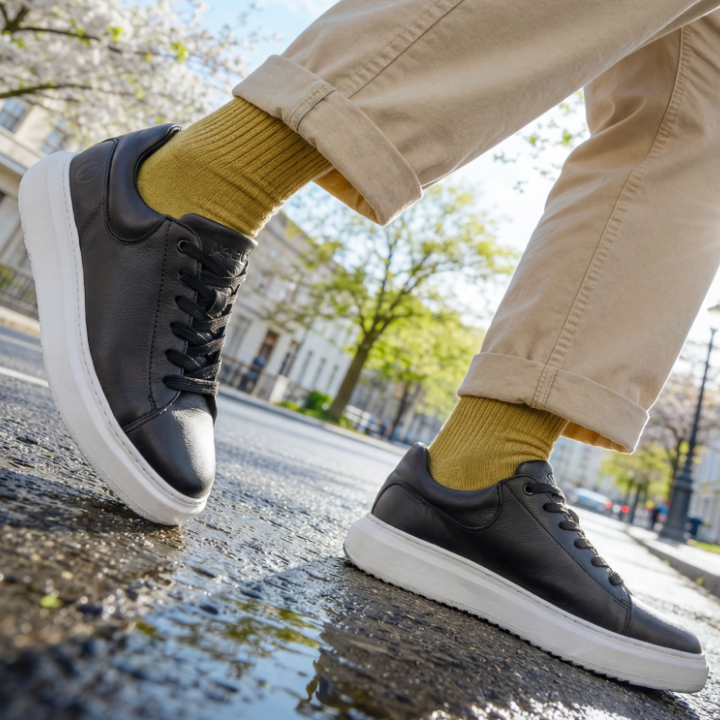 Daisy Black sází na elegantní kontrast černé kůže a masivní bílé podešve. Je to ideální volba, pokud hledáte praktické boty, které i v jarním šatníku působí lehce a dodají vašemu outfitu šmrnc. Svršek z kvalitní kůže je odolný a velmi snadno se udržuje, takže budou vypadat skvěle i po celodenním běhání po městě. Vyšší podrážka vám navíc opticky přidá pár centimetrů a zajistí stabilitu na každém povrchu. Daisy Black jsou důkazem, že i jednoduchá teniska může vypadat vkusně k úzkým džínům i jarnímu kabátu. Výška podešve 44 mm.