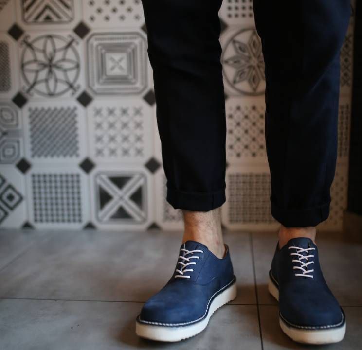 Modř, nebe, výhled, pohled v dál a městské panorama – to byla naše největší inspirace při tvorbě tohoto modelu. Tmavě modrá se hodí pro jakoukoliv příležitost a vysoká bílá podešev dodává botě nevšední vzhled. Při jejich navrhování jsme se snažili zachovat jednoduché linie a i vaše cesty v nich budou přímočaré. Kůže se postupně přizpůsobí tvaru nohy a poskytne vám oporu a pocit bezpečí, ať už se v nich vydáte kamkoliv. Formální nízké boty do města šité v minimalistickém střihu. Kožená obuv, která je ručně vyráběná v České republice. Můžete si na ně přidat vlastní iniciály a vykročit vstříc zážitkům v opravdu vašich botkách. Kopyta, na která natahujeme tyto boty a celou letošní letní kolekci, jsou spíše užší a vhodná pro všechny s nižším nártem.