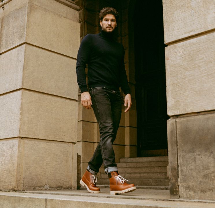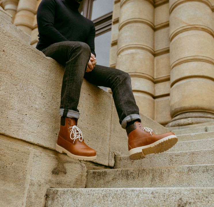 Vylepšené farmářky z pravé kůže, které jen tak něco nezastaví. Výlety do hor, procházky lesem i cesta do práce – v těchto kotníkových botách nejsou problém.
