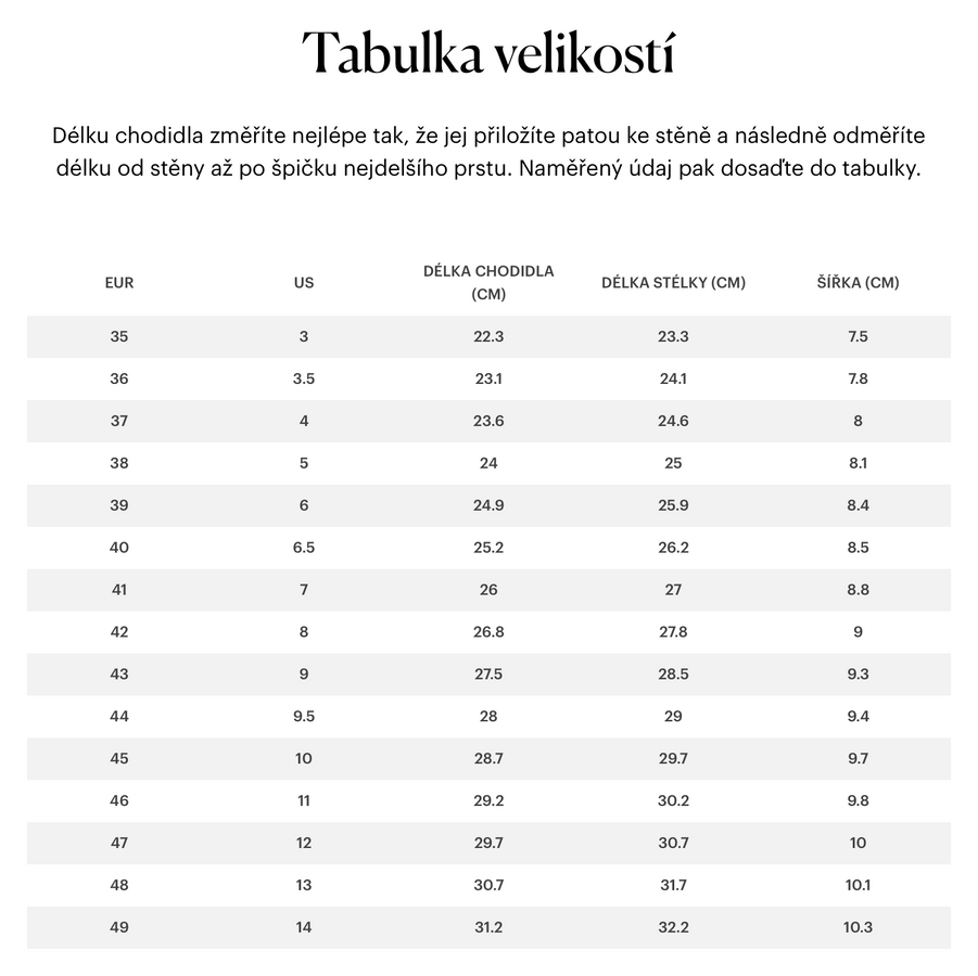 Rozměry: Nadrozměrné velikosti 48 a výše pro vás rádi ručně vyrobíme s příplatkem 300 Kč.