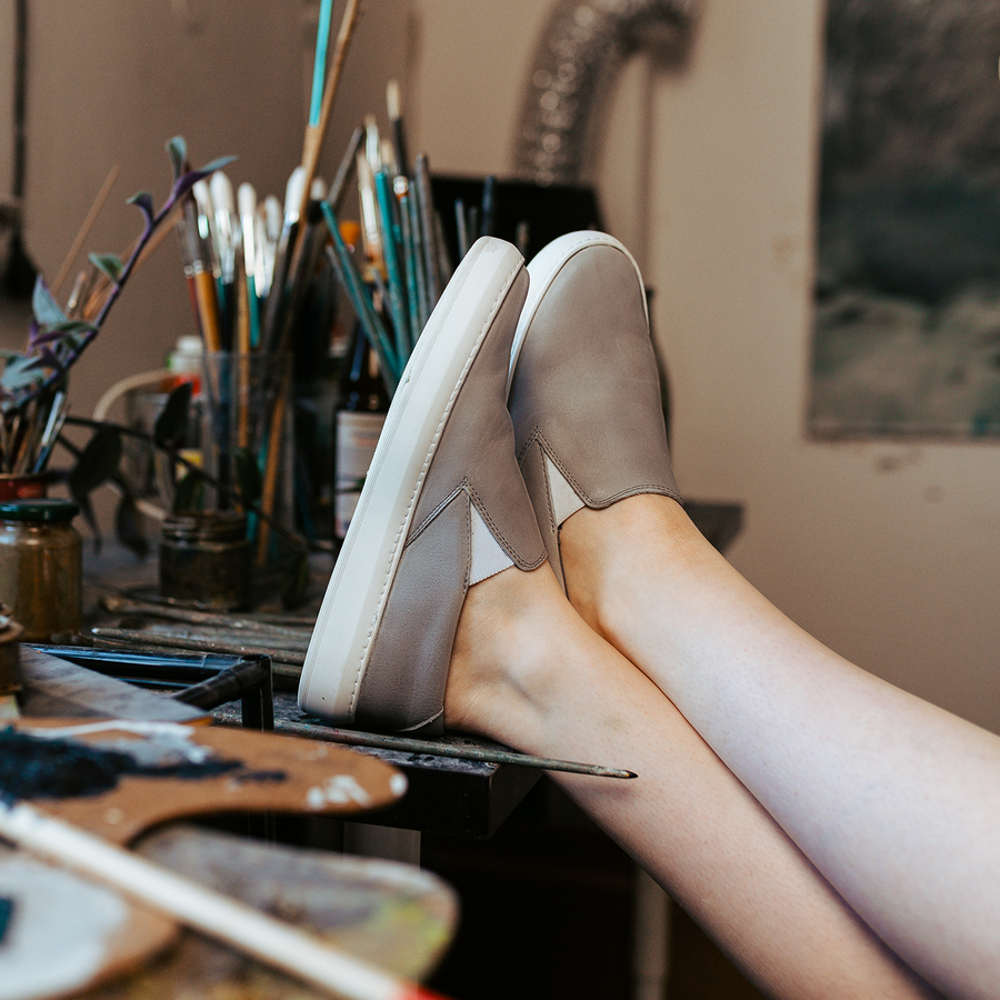 Zatímco ostatní si vážou tkaničky, vy jste o krok napřed. Faux pas při nenaplánovaných akcích je vyloučeno. V šedých kožených slip on botách nešlápnete vedle, ať už v nich vkročíte na poradu, večeři ve dvou nebo narozeninovou oslavu. Navrhli jsme je tak, aby vás nijak neomezovaly. Jejich kožené provedení je z prázdninové festivalové obuvi proměňuje v boty, které nelimituje sezóna ani příležitost. Řemeslná kvalita a ruční výroba z nich pak dělá investici minimálně na několik let.