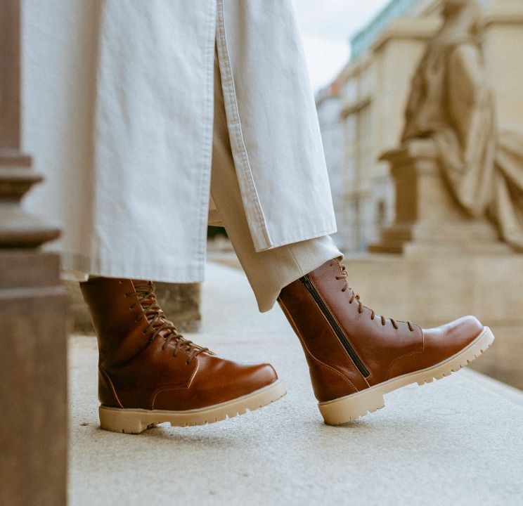 Vasky vyrábíme z kvalitní kůže, která se postupně přizpůsobuje vaší noze a neustále pracuje. Postupem času se může lehce proměňovat její barevnost a boty můžou nošením získat patinu. Říkáme tomu, že stárnou do krásy.